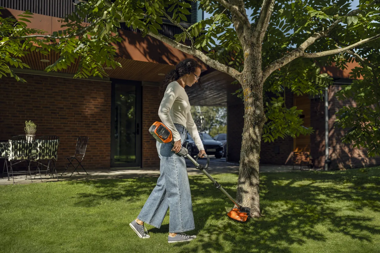 Dank des geringen Gewichts, des teleskopierbaren Schafts und des verstellbaren Handgriffs ist er sehr bequem zu bedienen und einfach zu lagern. Das moderne, intuitive Bedienfeld und der Trimmerkopf mit Fadennachführung von außen, sorgen für einen reibungslosen und zuverlässigen Betrieb.